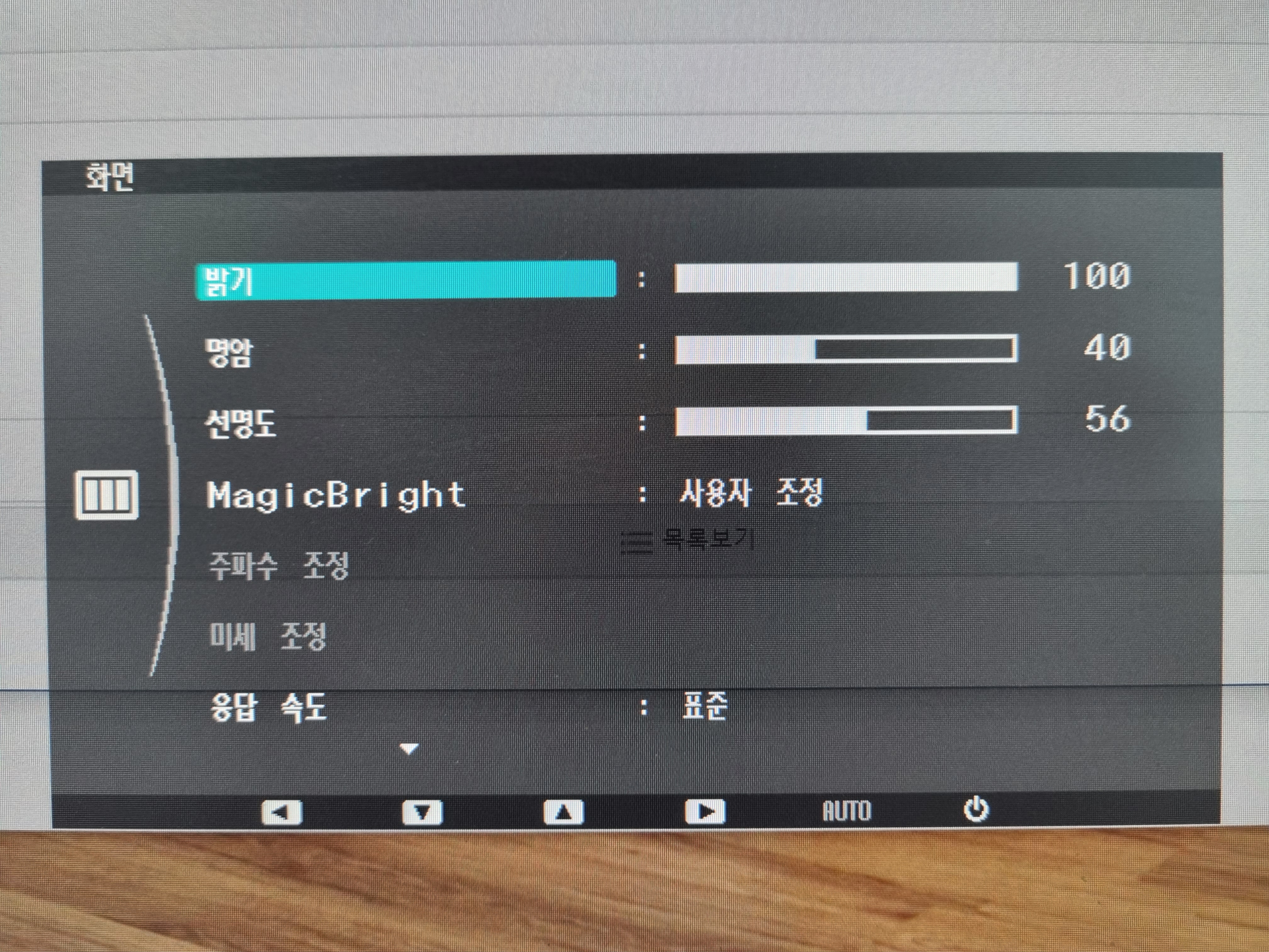 모니터 설정에서는 밝기를 100으로 했지만 다른 설정들을 조절해서, 실제 사람 눈으로 보기에 밝기는 100 이 아니라 예전정도 인 것 같다.