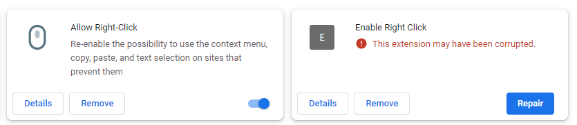 찾아보다가 제대로 동작하는 Allow Right-Click을 사용하기 시작. //22.9.5