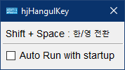 최초로 hjHangulKey를 실행시, '윈도우 시작시 자동실행' 옵션을 선택하고 싶으면 Show 메뉴를 통해서 메인 화면을 보이게 한 후에 선택해야 한다.