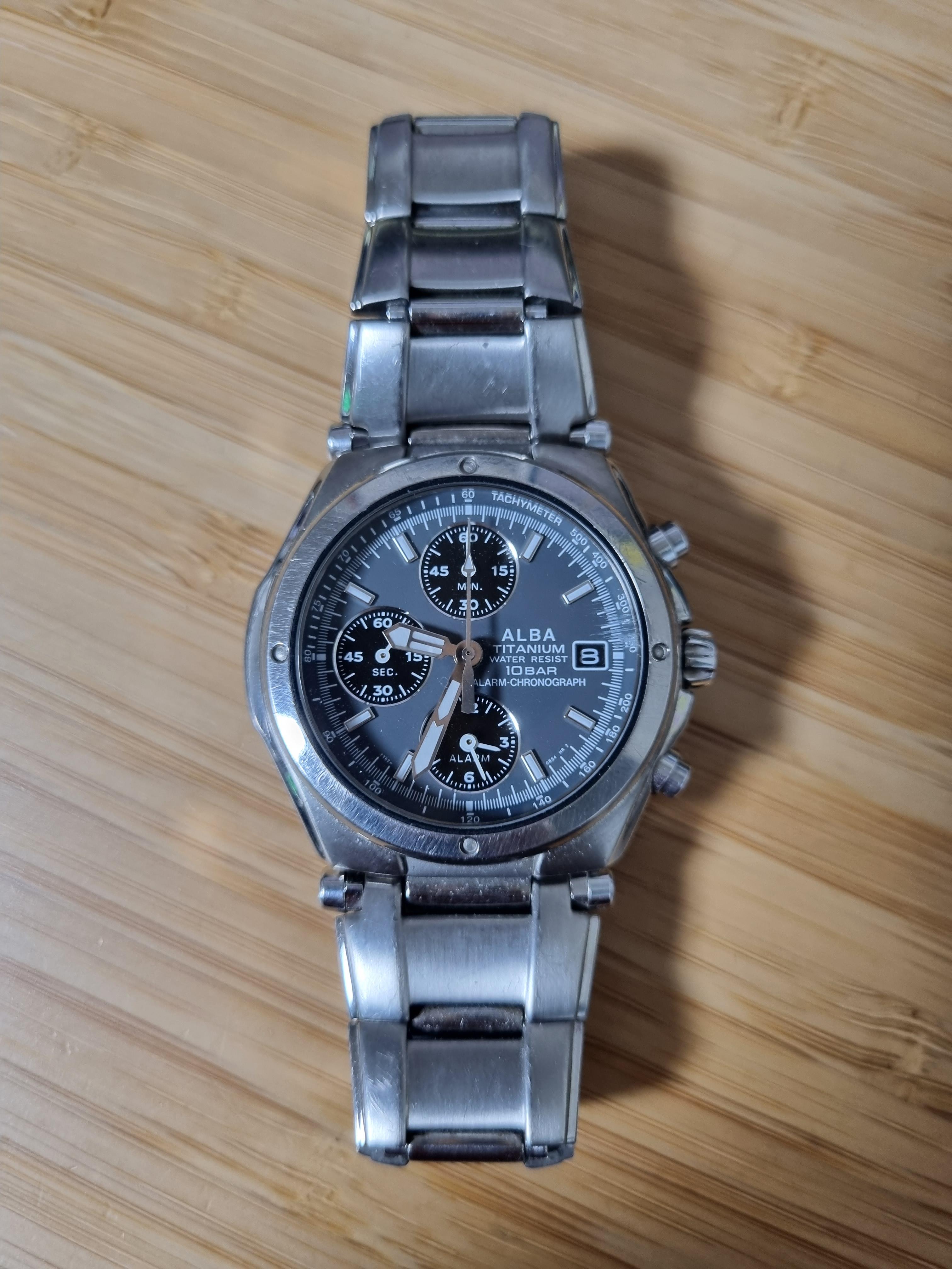 티타늄이어서 메탈시계처럼 보여도 착용하면 가벼운 편이다.