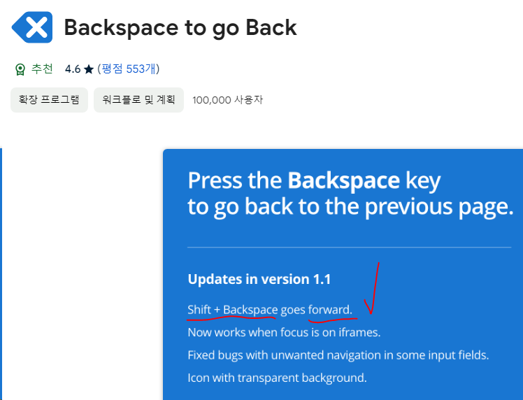 (나는 마우스의 기타버튼에 go back/forward 기능을 할당하고 사용하고 있지만, 가끔씩은 backspace키를 사용하는게 요긴하다)