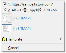이것의 용도는 클립보드의 히스토리를 쉽게 보고, 번호를 눌러서 쉽게 사용하기 위함. (이 단축키를 누르면, 아래그림처럼 히스토리가 보임)