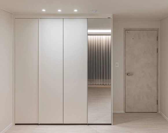 - 신발장 건너편 벤치장 : 윗면에 쿠션(의자처럼), 아래에 수납장(양문도어) - 통신분배함 : 주방 우측벽쪽에 있어서 붙박이장 위치와 겹치므로, 분배함을 사용할 수 있도록 붙박이장의 뒷면 일부를 개방해야 함. - 신발장 건너편벽에 큰 거울 부착 : 두꺼비집 경계선부터 시작하여 우측으로 최대한 넓게 - 가구 색상 : 전체적으로 흰색계열(아이보리? 이룸사무실에서 결정했음), 신발장 건너편 벤치장은 나무색 - 오픈박스 색상 : 전실 화분장의 오픈박스는 흰색계열(장과 동일색상), 신발장의 오픈박스는 나무색